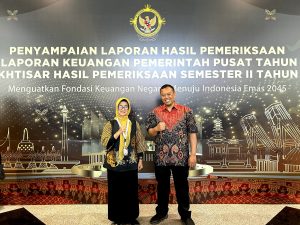 Wali Kota Pematangsiantar dr Susanti Dewayani SpA menghadiri Seminar Nasional serta Penyerahan Laporan Hasil Pemeriksaan atas Laporan Keuangan Pemerintah Pusat (LHP LKPP) Tahun Anggaran (TA) 2023 dan Ikhtisar Laporan Hasil Pemeriksaan Semester II TA 2023, di Jakarta Convention Center, Jakarta Pusat, Senin (08/07/2024).