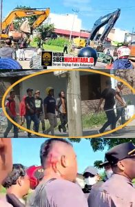 Bentrokan antara aparat dan warga pecah saat saat pembongkaran bangunan tidak berizin di Jalan Haji Anif, Kecamatan Percut Sei Tuan, Kabupaten Deli Serdang, Sumatera Utara.