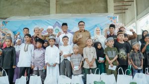 Sebanyak 50 anak yatim/piatu menerima bantuan berupa uang santunan dan paket sembako yang diserahkan Pj. Bupati Heri dan Pj. Ketua TP PKK Ny. Febyriani.