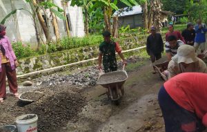“Saya langsung berkoordinasi dengan kepala desa dan perangkat desa untuk mencari solusi, Setelah berdiskusi, kami sepakat untuk mengusulkan program cor jalan desa ke pihak terkait.” Ujar Serda Wahyudi.