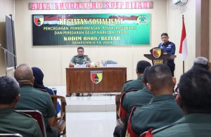 Dalam upaya mencegah bahaya narkoba, Kodim 0808/Blitar bekerja sama dengan Badan Narkotika Nasional (BNN) Kab. Blitar mengadakan kegiatan penyuluhan tentang bahaya narkoba kepada anggota di wilayah tersebut. Kegiatan penyuluhan ini bertujuan untuk memberikan pemahaman yang lebih mendalam mengenai kerentanan dan dampak negatif dari penyalahgunaan narkoba bertempat di Aula Shodancho Soeprijadi Makodim Jln. Ahmad Yani Kel. Kepanjenkidul Kec. Kepanjenkidul Kota Blitar, pada Selasa. (25/9/2024)