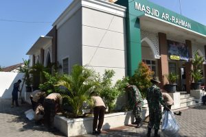 Jelang HUT TNI, Dandim Sragen Pimpin Bersih bersih Tempat ibadah, pasar dan pengobatan gratis