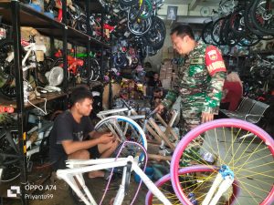 Guna meningkatkan hubungan kerja yang baik di wilayahnya, Babinsa kelurahan jayengan Koramil 03/Serengan Kodim 0735 Surakarta, Serka Priyanto melaksanakan Komsos maupun keakraban dengan sdr. teguh Mulyono pegawai toko sepeda cinpu yang berada dirt 01 RW 04 jl.dr radjiman kelurahan jayengan kecamatan Serengan kota Surakarta, hari Jum’at 27/09/2914 Pkl 09.00 Wib.