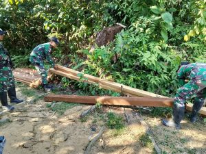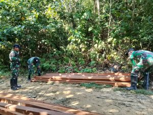 “Saat melakukan patroli, Personil Pos Sungai Tengah menemukan 42 batang kayu yang sudah tersusun rapi namun tidak menemukan dimana pemiliknya”, kata Letkol Andy.