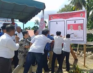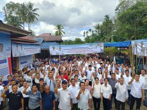 Pengukuhan Tim pemenang pasangan Amizaro Waruwu dan Yusman Zega di Kecamatan Aasa Talumuzoi Kabupaten Nias Utara diawali dengan renungan singkat dari Pdt. Irwan Zalukhu S.Th.