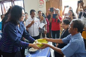 Usai ibadah, Ketua TP. PKK bersama rombongan menyerahkan ‘parbue pir, pisang si tonggi-tonggi dohot aek sitio-tio’ kepada perwakilan keluarga korban sebagai bentuk doa permohonan kepada Tuhan, agar ke depannya dijauhkan dari bencana dan dianugerahi berkat serta sukacita yang berlimpah. Prosesi budaya ini menjadi simbol harapan dan kasih dari pemerintah kepada masyarakat.