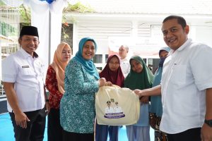 Dalam kesempatan tersebut, Ketua TP PKK Kabupaten Langkat, Ny. Endang Kurniasih Syah Afandin bersama Kepala Dinas Sosial Kabupten Langkat Taufik Reza memberikan 10 paket sembako kepada wanita korban kekerasan dan lansia.