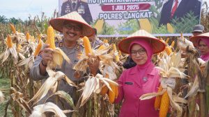 Dalam rangka menyambut Hari Bhayangkara ke-79, Polres Langkat menunjukkan kepedulian dan dukungan nyata terhadap ketahanan pangan nasional dengan menggelar kegiatan Panen Raya Jagung di lahan milik PT. LNK, Perkebunan Tanjung Beringin, Kabupaten Langkat, Rabu (18/6/25).