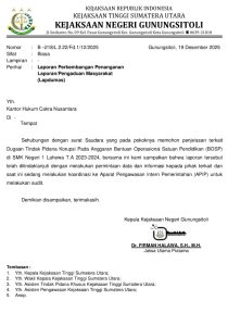 Kasi Pidsus Kejari Gunungsitoli, Berkat Dachi, saat dikonfirmasi awak media pada Selasa (19/01/2026) menegaskan bahwa pihaknya telah mengambil langkah formal dengan menyurati Inspektorat Provinsi Sumatera Utara.